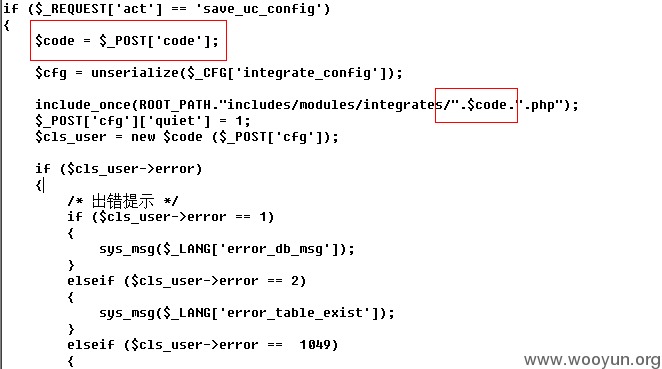 第一个存在\admin\integrate.php文件中(其实还有好多,我找了两个代表的就提交了)