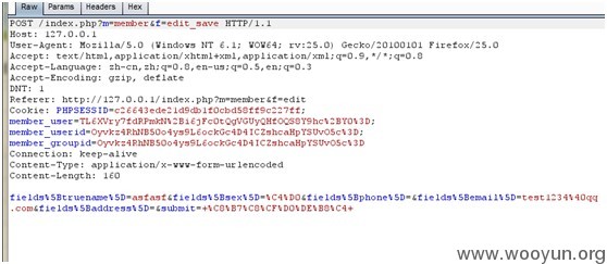 然后当我们修改个人资料时候抓包