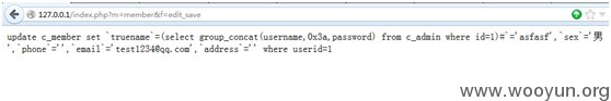 其实这是urlencode编码了的,解码为 `=(select group_concat(username,0x3a,password) from c_admin where id=1)#